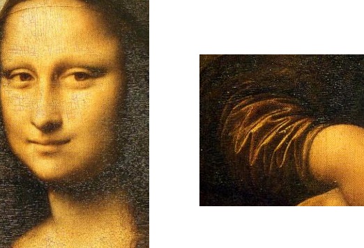 One thing worth noting is that while paintings of the day generally had both the subject and background in sharp focus with lots of detail – the background of the Mona Lisa seems to ‘fade’ or become more blurred and out of focus the further from the subject it extends.